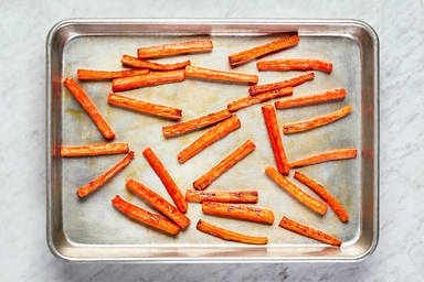 Roast on top rack until lightly browned and tender, 15-20 minutes. TIP: Taste the carrots after roasting and add a pinch more harissa powder if you like things spicy.