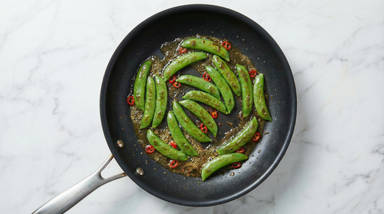 Heat a drizzle of oil in same pan over medium-high heat. Add snap peas and as much chili as you like; cook, stirring occasionally, until snap peas are browned and mostly tender, 2-4 minutes.