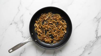 Add 1 tsp sugar (2 tsp for 4 servings) and a splash of water; cook until onion is caramelized and jammy, 2-3 minutes more. Season with salt and pepper.