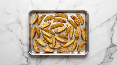 Toss potatoes on a baking sheet with a large drizzle of oil, garlic powder, salt, and pepper.